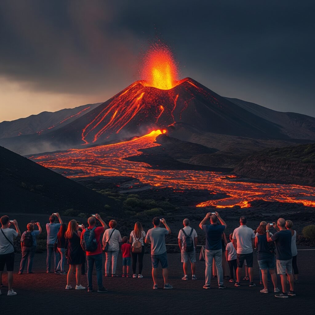 Vivre dans l’ombre du mont Etna signifie entretenir une relation unique avec la nature. Pour les Siciliens, les fréquentes éruptions de l’Etna font partie intégrante de leur vie – une force majestueuse qui inspire à la fois respect et émerveillement. Bien que la sécurité soit toujours primordiale, de nombreux habitants et même certains touristes intrépides sont attirés par ces spectacles incroyables. C’est un équilibre délicat entre l’observation d’une merveille naturelle et la nécessité de suivre les avertissements des autorités pour maintenir une distance de sécurité.